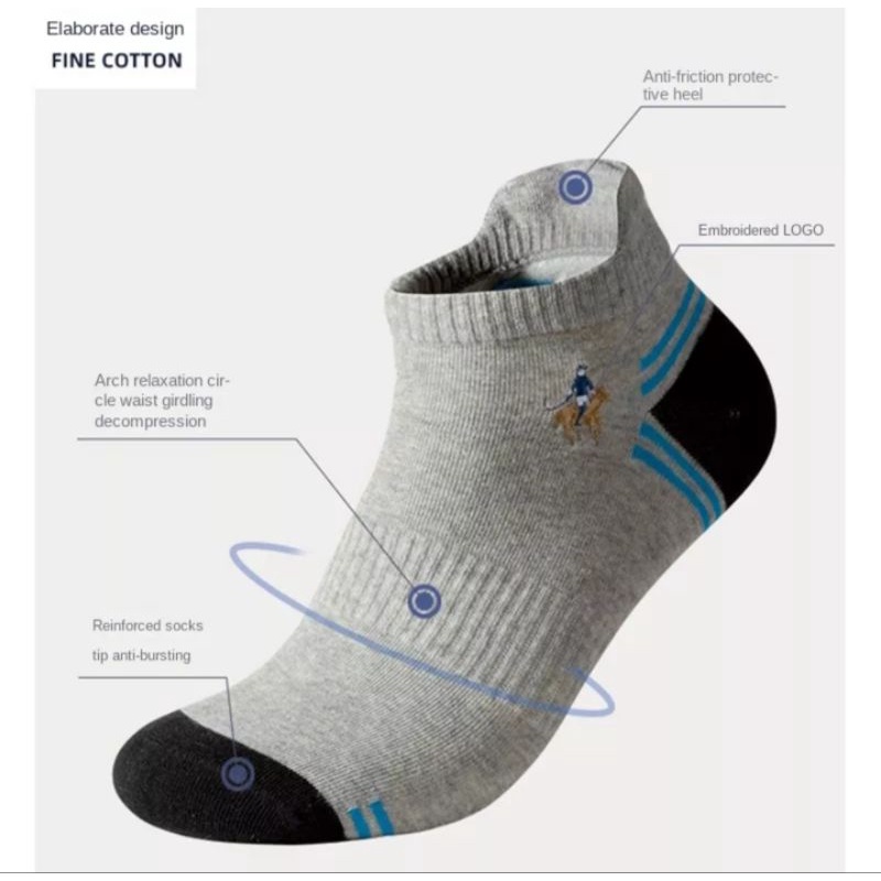 Brand: Pier Polo type Model: D20-06 Casual Material: 75.2% Cotton Combed 21.8% Polyester Fiber 3% Spandek. Weight: 40 grams pair All Size : 38-45