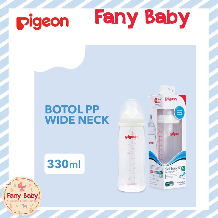 Botol BPA Free dengan desain lebar berukuran 330 ml yang terbuat dari bahan PP (Polypropylene) yang tahan suhu sterilisasi hingga 110C dan tinta food contact grade sehingga sesuai digunakan untuk bayi. Botol dengan screw warna Ivory ini dilengkapi dengan SofTouch P-Plus Nipple berbahan karet silikon lembut dan elastis yang tahan suhu sterilisasi sampai 120Celsius berukuran L