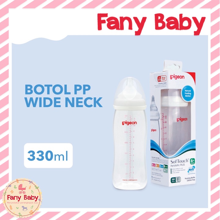 Botol BPA Free dengan desain lebar berukuran 330 ml yang terbuat dari bahan PP (Polypropylene) yang tahan suhu sterilisasi hingga 110C dan tinta food contact grade sehingga sesuai digunakan untuk bayi. Botol dengan screw warna Ivory ini dilengkapi dengan SofTouch P-Plus Nipple berbahan karet silikon lembut dan elastis yang tahan suhu sterilisasi sampai 120Celsius berukuran L