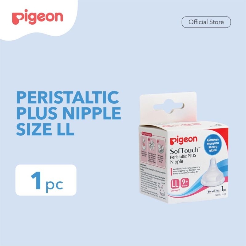 Terdiri dari 1 Pigeon Peristaltic Plus Nipple LL for Wide Neck Bottle, yang terbuat dari Ultra Soft Silicone yang mampu bergerak sangat elastis. Desainnya yang lebar membantu bayi membuka mulut lebih lebar untuk mendorong gerakan peristaltik yang kuat dan lancar