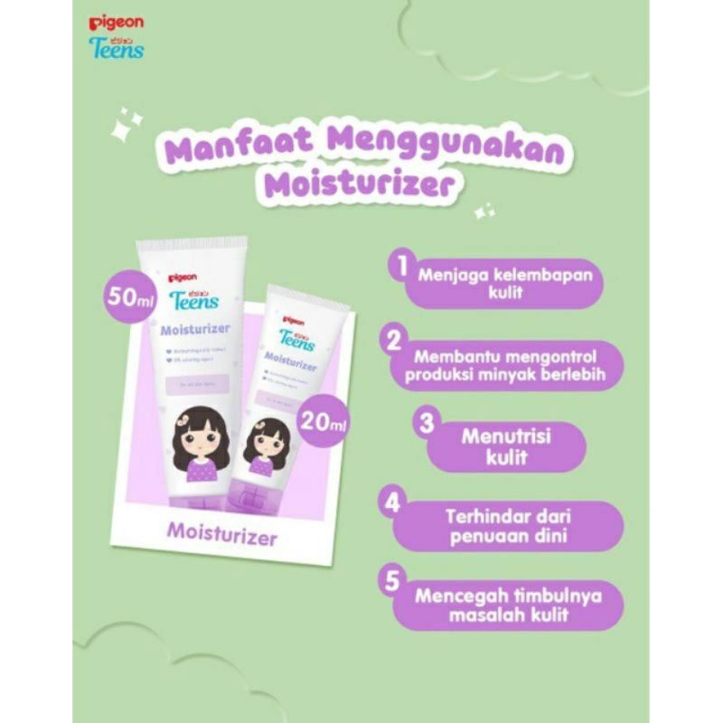 Pelembab Wajah Remaja Moisturizer Dengan Bahan Alami Untuk Membantu Menjaga Dan Melindungi Kelembaban Alami Kulit Wajah. Mengandung Ekstrak Jojoba dan Chamomile Yang Berfungsi Menyejukkan, Merawat Kelembaban Dan Membantu Melindungi Kulit Dari Iritasi Ringan. Diperkaya Dengan Hydroviton 24 Menjadikan Kulit Tetap Halus, Lembut Dan Tidak Kering. Berbentuk Lotion Dengan Formula Ringan, Mudah Meresap Dan Tidak Berminyak. Gunakan Setiap Pagi Dan Malam Hari. Untuk Segala Jenis Kulit.