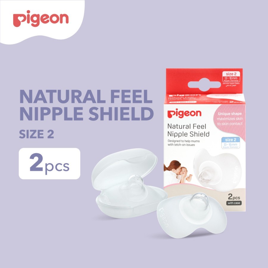 Pigeon nipple shield terbuat dari bahan silicone yang lembut. Desain lubang puting yang menonjol keluar dan perlekatan silicone ke kulit ibu memudahkan bayi untuk menyusu sehingga bayi merasa sama seperti ketika menyusu skin to skin dengan ibu.
