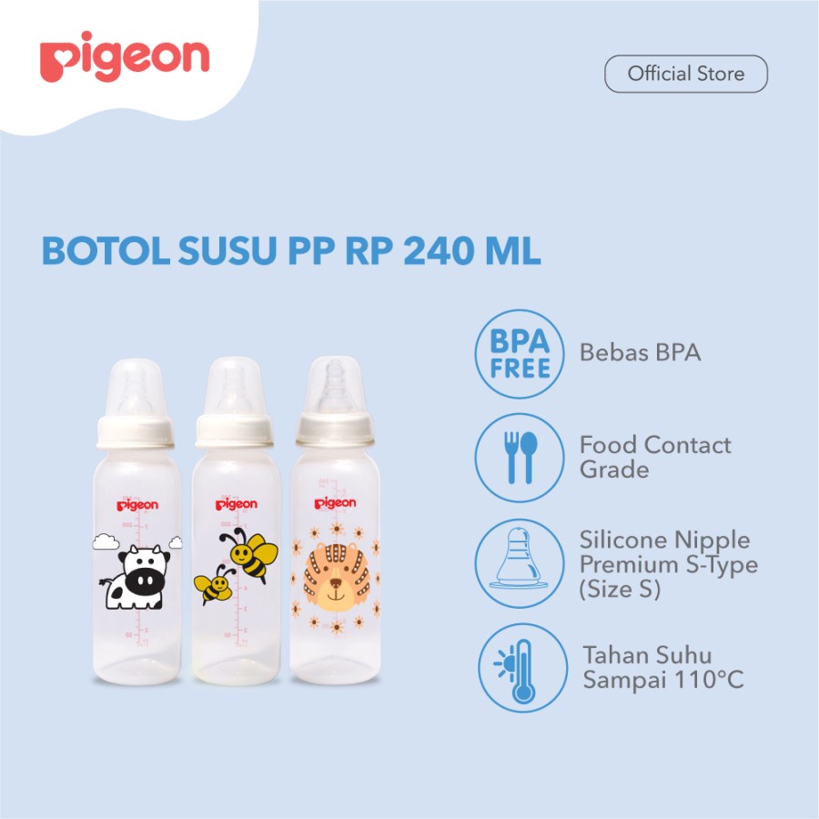 Botol desain slim dan bentuk botol bulat ukuran 240ml yang terbuat dari bahan Polypropylene , BPA Free dan Food Contact Grade. Dapat disteril hingga suhu 110C. Botol dengan dot Perisltaltic Slim Neck (S- Type Nipple) ukuran M untuk bayi baru lahir