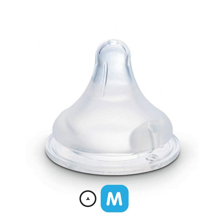 Ukuran M: 3+ bulan, saat bayi mulai mengangkat kepala. Pada waktu ini bayi mulai lebih pintar dalam meminum susu pada botol atau pun ASI.