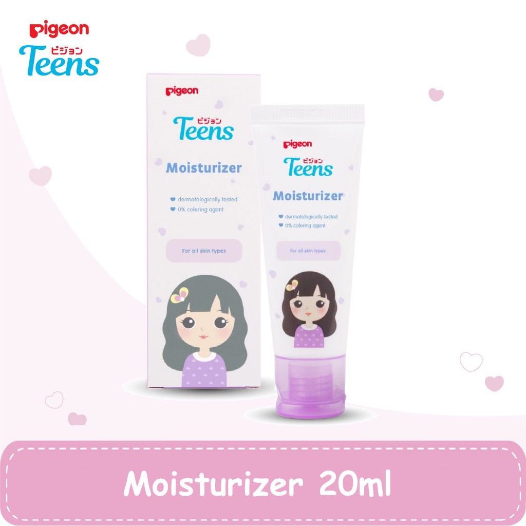 ~ Pigeon Teens Moisturizer Pelembab Wajah Remaja Moisturizer Dengan Bahan Alami Untuk Membantu Menjaga Dan Melindungi Kelembaban Alami Kulit Wajah. Mengandung Ekstrak Jojoba dan Chamomile Yang Berfungsi Menyejukkan, Merawat Kelembaban Dan Membantu Melindungi Kulit Dari Iritasi Ringan. Diperkaya Dengan Hydroviton 24 Menjadikan Kulit Tetap Halus, Lembut Dan Tidak Kering. Berbentuk Lotion Dengan Formula Ringan, Mudah Meresap Dan Tidak Berminyak. Gunakan Setiap Pagi Dan Malam Hari. Untuk Segala Jenis Kulit. Netto : 20Ml