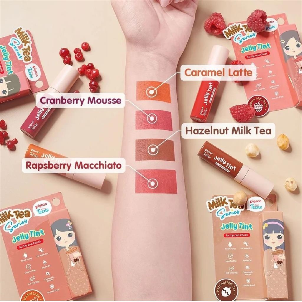 Pigeon Teens Jelly Tint with a light and non-sticky texture. Enriched with Jojoba Oil, Chamomile Extract, and Glycerine which can moisturize the lips so that it is comfortable to use all day long.