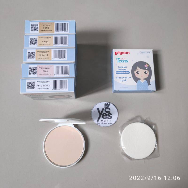 Pigeon Teens Bedak Padat ( Kemasan Biru) * Harga untuk 1 Refil + Puff * Netto 14g * Compact Powder + UV Protection * Innocent Look * Ada 5 Varian Warna : Natural, Beige, Pink, Sand & White * Exp aman Selalu Update