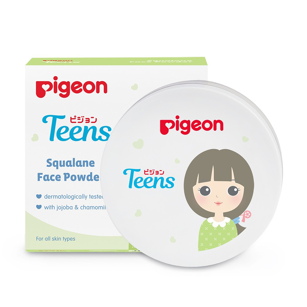 PIGEON Teens Squalane Face Powder Indonesia / Bedak Tabur 12g / Dermatologically Tested Jojoba & Chamomile / For All Skin Types / Natural Berjerawat Berminyak / Cosmetic Makeup Series Anak Remaja Full Set Refill Loose Compact Two Way Cake Foundation Padat