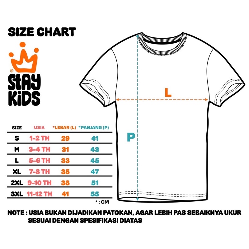 Bahan Pakaian : Cotton ====== Detail Ukuran ====== SIZE = Lebar dada x Panjang Baju ( Perkiraan Umur ) S = L : 29, P : 41 ( 1 - 2 TAHUN ) M = L : 31, P : 43 ( 3 - 4 TAHUN ) L = L : 33, P : 45 ( 5 - 6 TAHUN ) XL = L : 35, P : 47 ( 7 - 8 TAHUN ) XXL = L : 38, P : 51( 9 - 10 TAHUN ) XXXL = L : 41, P : 55 ( 11 - 12 TAHUN )