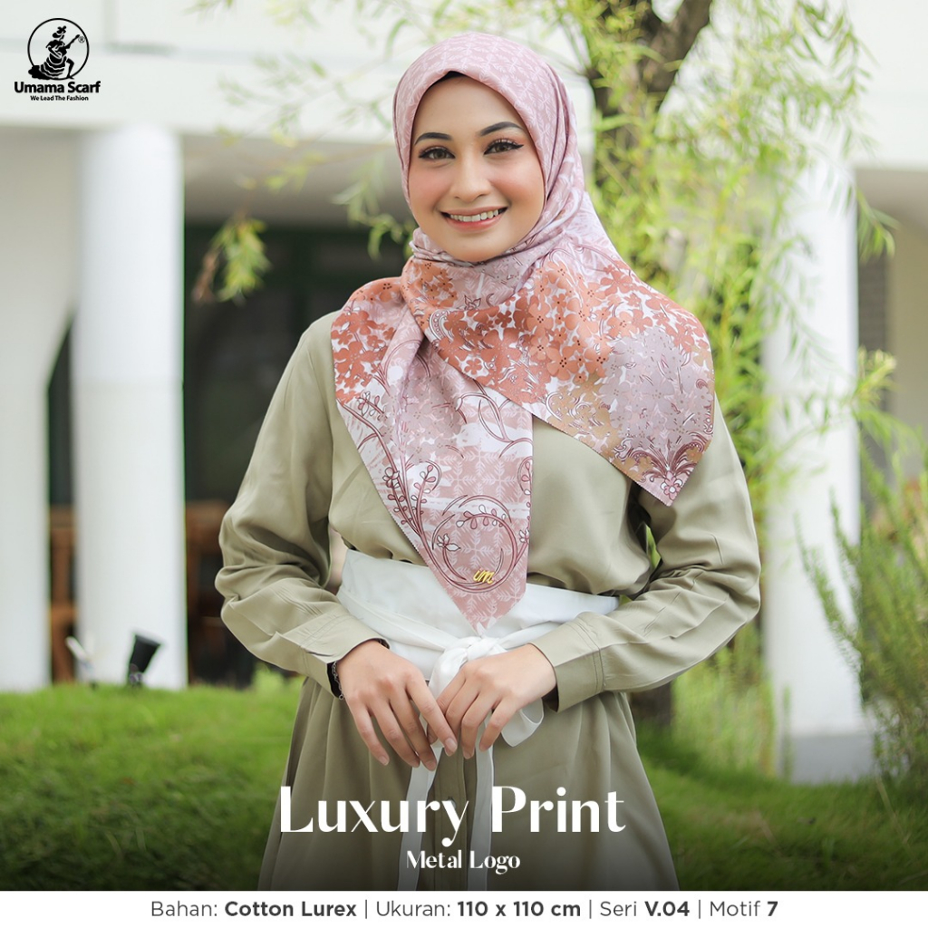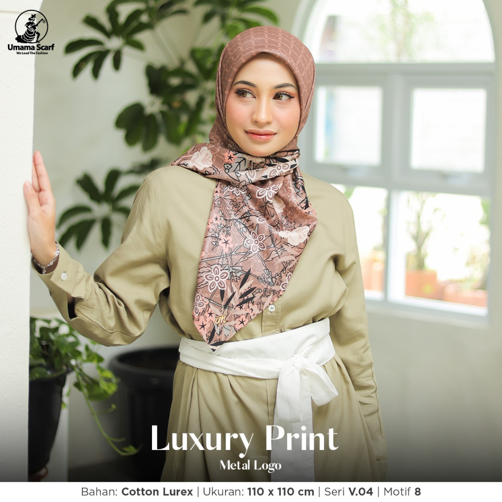 Detail PILIH WARNA UMAMA Hijab Segiempat Luxury Motif Print Lasercut Metal Logo