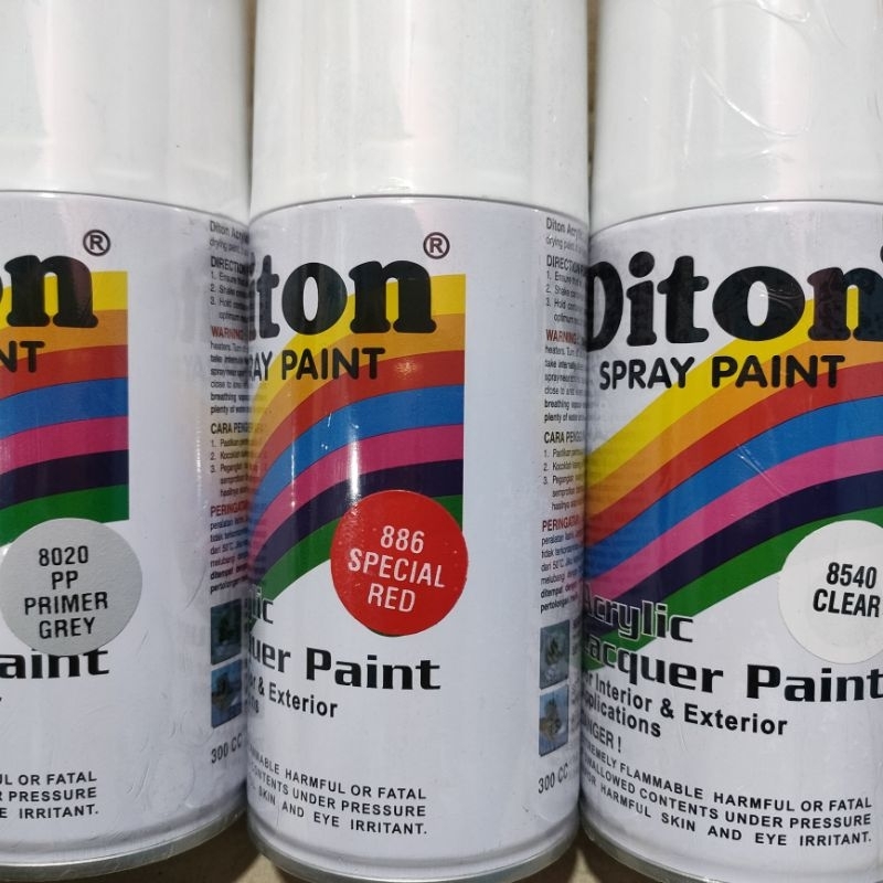 Detail Pilok Cat Diton Paket Lengkap 3 Kaleng 300cc Merah Cabe 886 Primer Grey 8020 Clear Glossy 8540