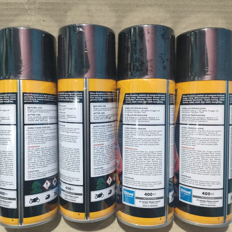 DITON PREMIUM adalah cat yang dibuat dengan formulasi campuran khusus berkualitas tinggi dan terbaik di kelasnya dengan keunggulan: -garansi tahan bensin -tahan retak -hasil lebih mengkilap -daya kering yang cepat menempel dengan sempurna di semua permukaan media yang di aplikasikannya dengan tekanan angin stabil dan kencang(jarak semprot 20cm-25cm)..