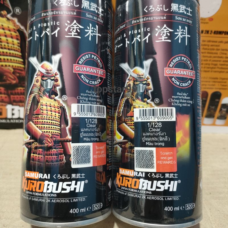 Video perkenalan produk PILOK CAT SAMURAI CLEAR / PERNIS (128) CAT SEMPROT AEROSOL 400ML. Sumber: Shopee.