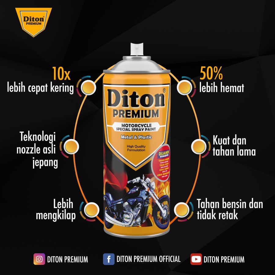 Keunggulan Diton Premium: - Tahan Bensin - Tidak Retak - Cepat Kering - Lebih Mengkilap