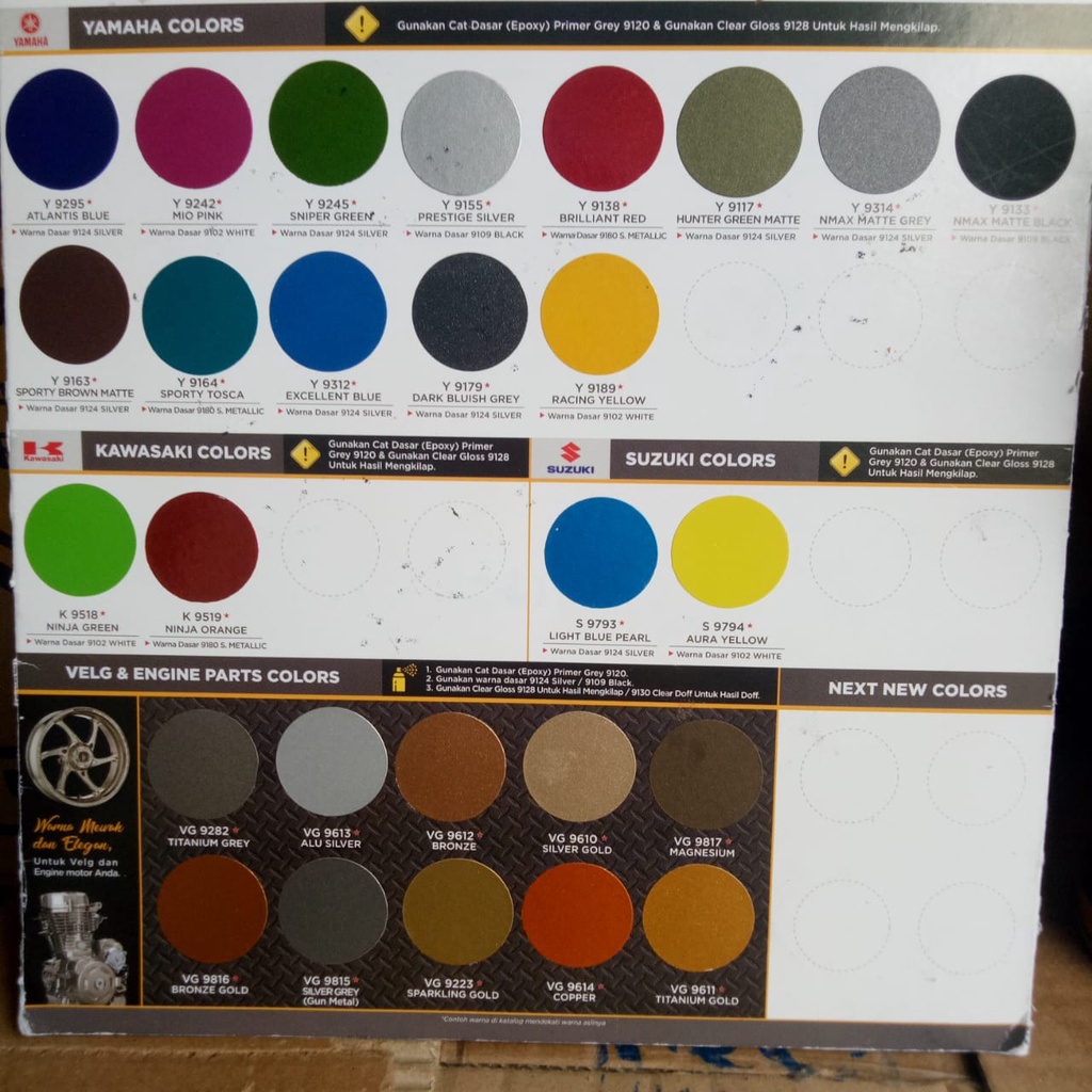 Merk : Diton Premiumwarna: copperkode : vg 9614Ukuran : 400mlDijamin:Tahan bensinTidak retakCepat keringLebih mengkilapTersedia warna lain silahkan cek dietalase kami klik kode atau hubungi admin..