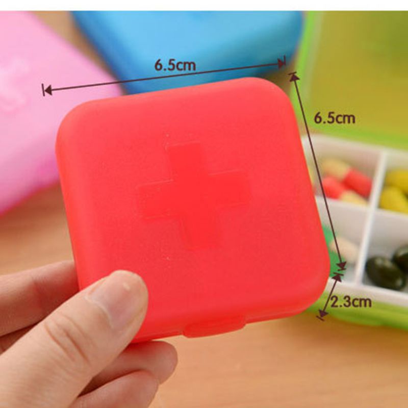 Terdapat 4 sekatan yang dapat digunakan untuk menyimpan obat/suplemen saat berpergian atau menyimpan barang lainnya seperti perhiasan.