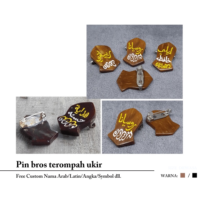 pin bross Ini di buat dari kayu kaukah kokka original hasil kerajinan tangan dengan sentuhan karya seni pada setiap ukir namanya.