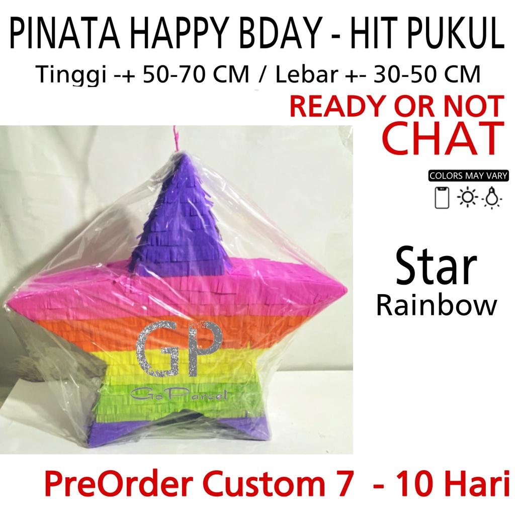 *HARGA UNTUK 1 SET DAN PEMUKUL *MODEL TARIK ATAU PUKUL *UKURAN TINGGI 50-60 CM LEBAR 40-60CM SESUAI BENTUK PINATA *BERAT VOLUME TIDAK SESUAI TERGANTUNG MODEL DAN BENTUK, UNTUK BERAT *VOLUME RATA RATA 7-10 KG *KAMI MENYARANKAN UNTUK SELALU MENGGUNAKAN KURIR INSTANT