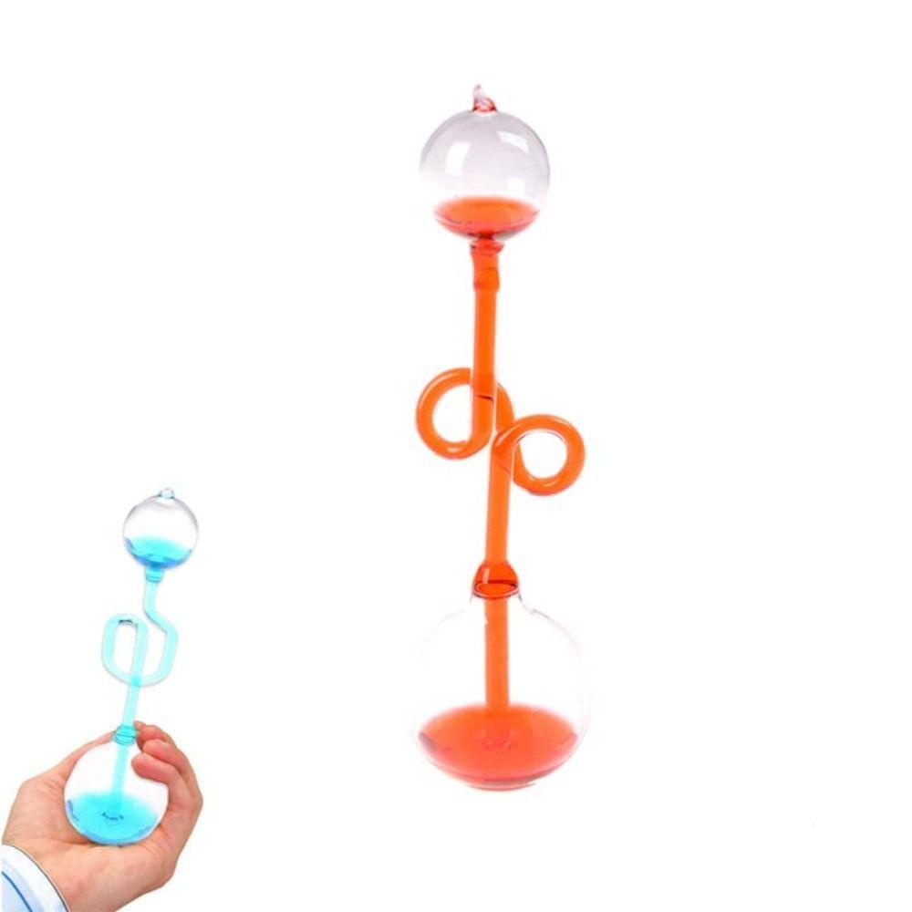 2.Ketel tangan menunjukkan Hukum Charles dan keseimbangan cairan uap. Cairan berwarna di dalam ketel terdiri dari campuran cairan yang mudah menguap yang memiliki titik mendidih tepat di atas suhu ruangan. Panas tubuh dari tangan Anda menyebabkan cairan mendidih, yang selanjutnya membuat cairan menguap, mengubahnya menjadi gas. Gas yang mengembang mendorong cairan ke atas dan ketika Anda melepaskan tangan Anda, keseimbangan didirikan kembali. Gas mengembun menjadi cairan lagi dan mengalir kembali ke bohlam bawah.