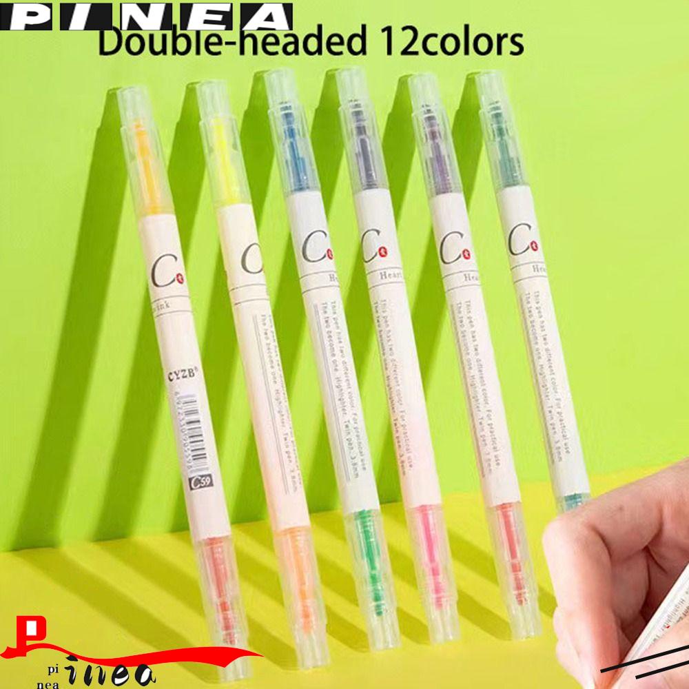 Set Pena Neon 6 PCS/Set x Set Pena Neon Pena Fluorescent Highlighter Set Penandaan Titik Kunci Double Head Warna Permen Akun Tangan Alat Tulis Berkapasitas Tinggi Anak Hadiah Siswa