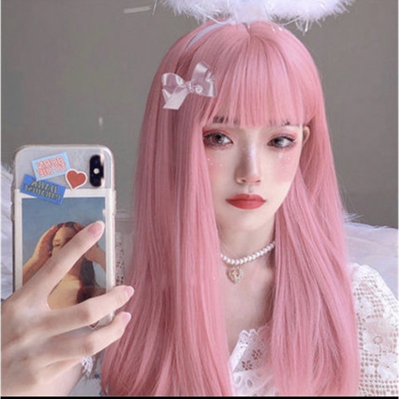 PINK 65CM Long Wavy Wigs with Bangs Ladies Cute HairPINK 65CM Long Wavy Wigs with Bangs Ladies Cute HairPINK 65CM Long Wavy Wigs with Bangs Ladies Cute Hair
