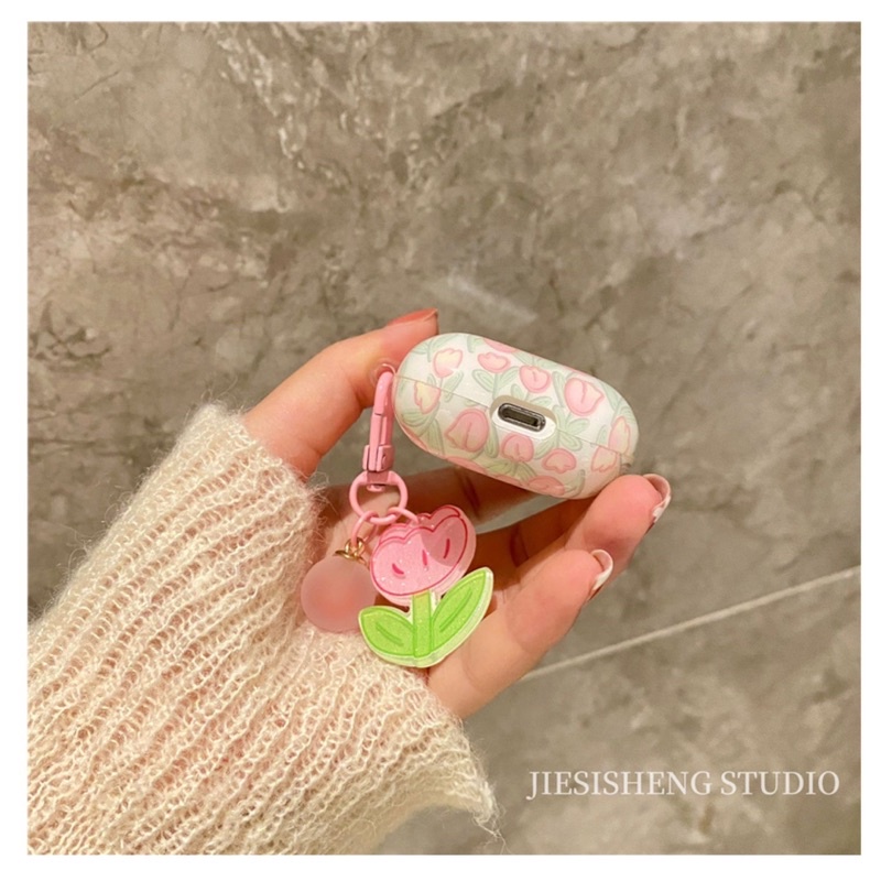 Detail Pink Tulip Field Softcase for Airpods 1 2 Pro 3 Case Airpods Lucu