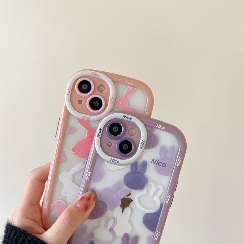 🔔Stok Siap】 Saham Siap】 Stok Siap】 Pink merah jambu merah jambu & Ungu Full Bunny Soft Case HP iP iPhone 11 12 13 14 Pro Max Apel Casing Puff Baru