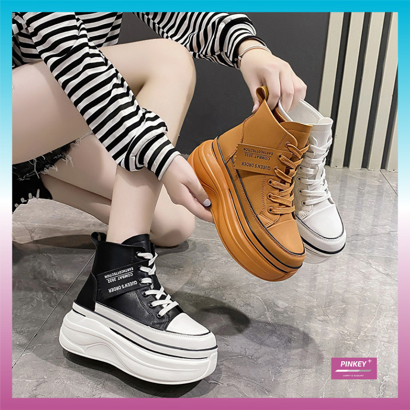 Detail ✅PINKEY P164 Sepatu Sneakers Boots Tinggi Wanita Sneakers Shoes Hak Tebal