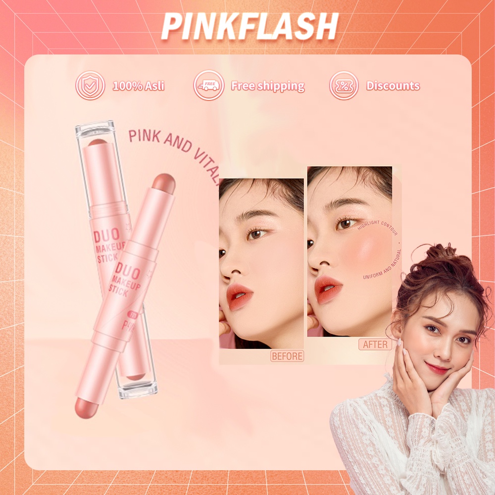 PINKFLASH#DoubleShaping Magic Shaping Flicker Honey DUO Makeup Stick, satu pena untuk dua, matte blush cantik and highlights berkilau, kaya warna dan elastis. Dapat menonjolkan dan monyoroti fitu wajah terbaikmu.