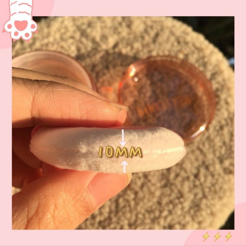 Benefit: Oil controller Hide pores and cover up blemishes Double layer flocking puff The powder smoothness like silky Lightweight and Matte Natural color Translucent Slightly brighten Lasting all day