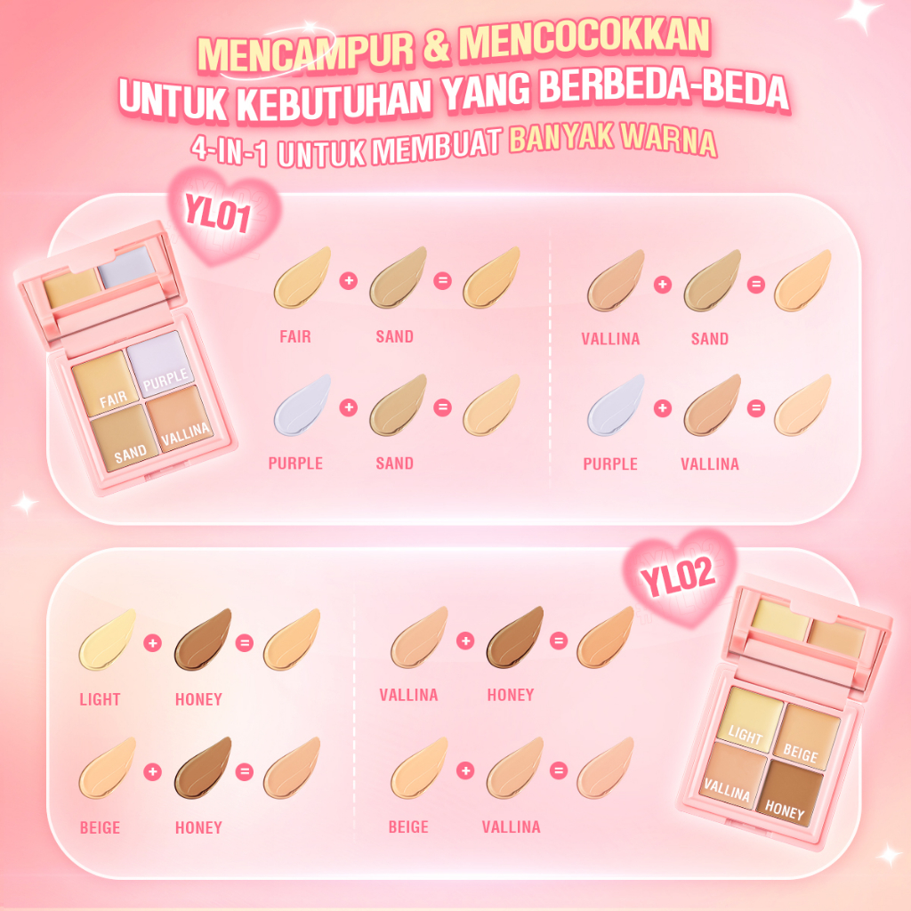 Video perkenalan produk PINKFLASH #More&More Multi-use Concealer Palette Full Coverage Multicolor Concealer Flawless Color Corrector Correcting Waterproof Double Fit Concealer. Sumber: Shopee.