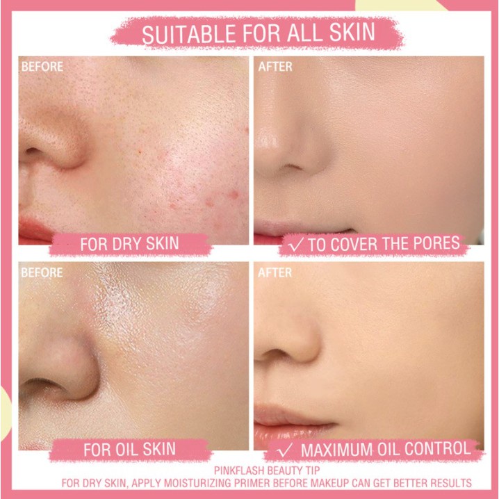 PINKFLASH Beauty Tip For Dry Skin :Apply Moisturizing Primer Before Makeup, If You'Re Super Dry,Better To Add With 1~2 Drops Of Essential Oil To Blend With It Before Use.