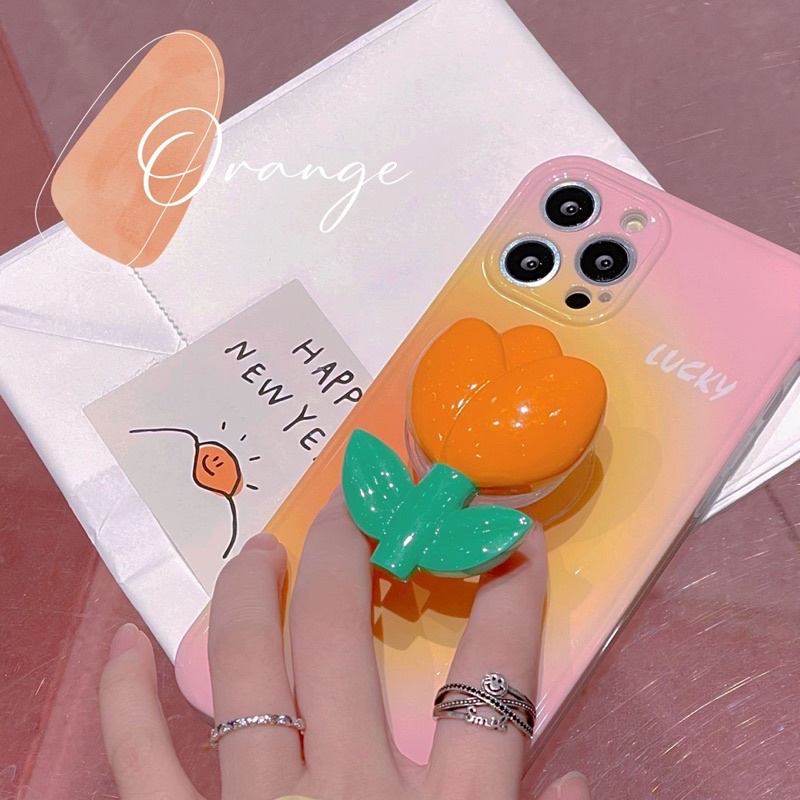 Handphone & Aksesoris > Casing & Skin > Casing & Skin Handphone > Pinky Orange Softcase With Tulip Holder for Case HP Lucu for iphone XS Max XR 11 Pro Max 12 Pro Max 13 Pro Max