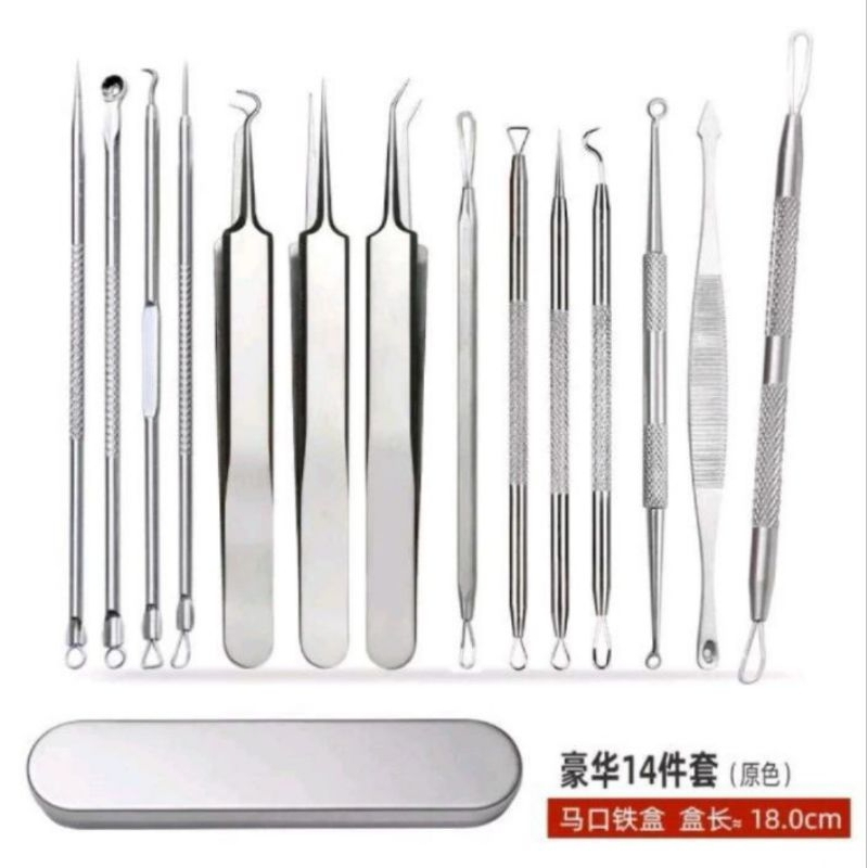 Pinset set (isi 14pcs) Pengangkat Komedo Ampuh Stainless