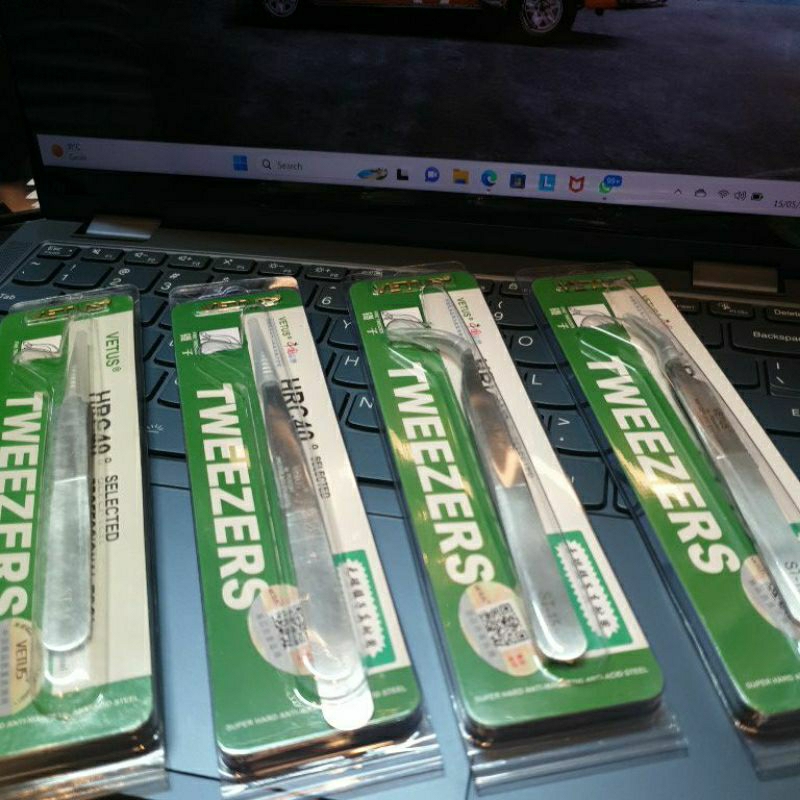READY STOCK warna kemasan RANDOM kwalitas sama PINSET VETUS ORIGINAL , TWEEZER / PINSET For Eyelash extension Tajam (sehingga mudah untuk memilah bulu mata) , tidak mudah bengkok.