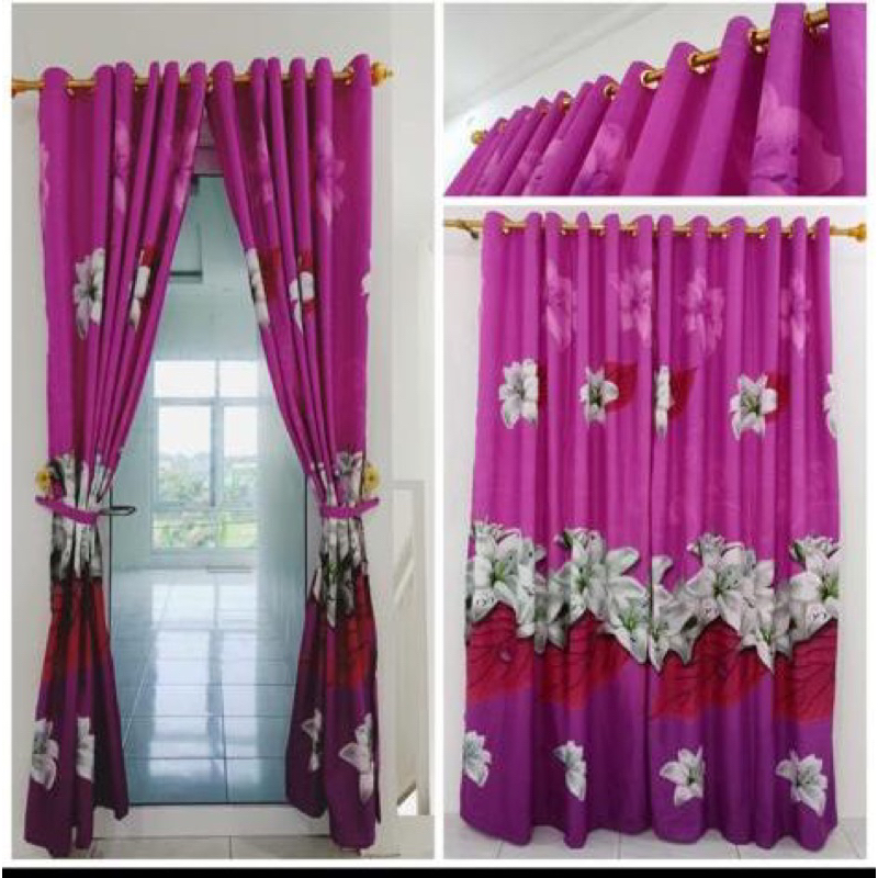 Perlengkapan Rumah > Dekorasi > Tirai & Tirai Gulung > [ PINTU DAN JENDELA ] GORDEN SMOKRING MOTIF BUNGA GARCIA VIOLET