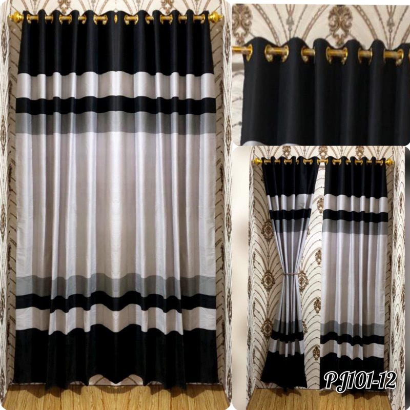 Perlengkapan Rumah > Dekorasi > Tirai & Tirai Gulung > [ PINTU DAN JENDELA ] GORDEN SMOKRING MOTIF ABSTRAK MINIMALIS HITAM ABU