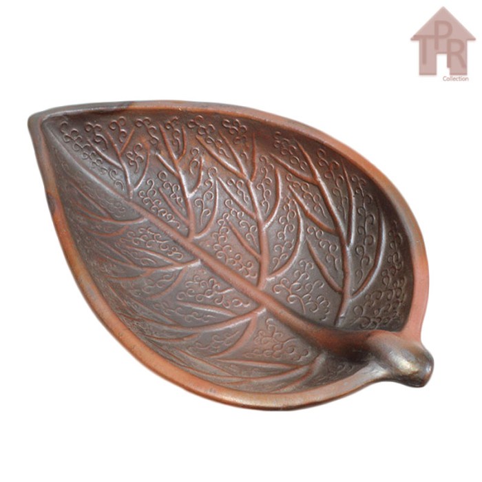 Detail Piring Daun Gerabah Natural P38 + Krat kayu