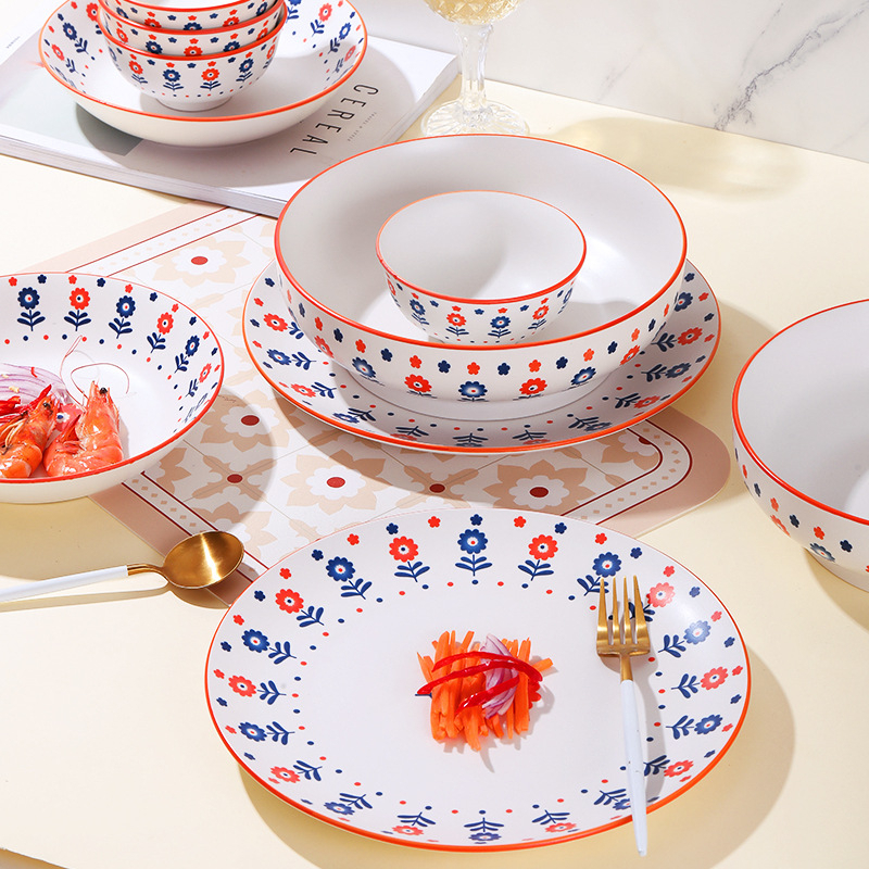 Detail Piring Keramik Jepang Motif Bunga Ukuran 20cm