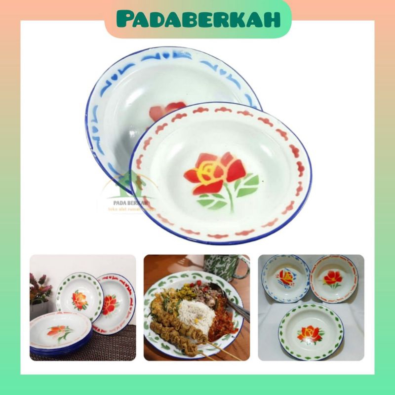 Perlengkapan Rumah > Peralatan Makan > Piring > PIRING MAKAN ENAMAEL MOTIF AYAM JAGO DAN BUNGA 22 CM TERMURAH / PIRING SENG AYAM JAGO / PIRING ANTIK JAMAN DULU JADUL