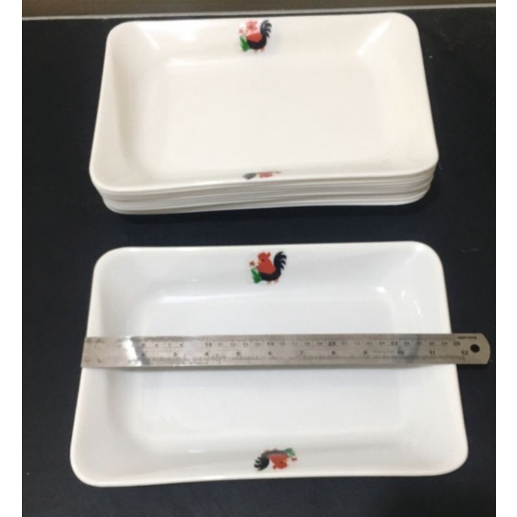 piring plastik ayam bentuk persegi panjang warna putih ukuran : 30x20x3cm