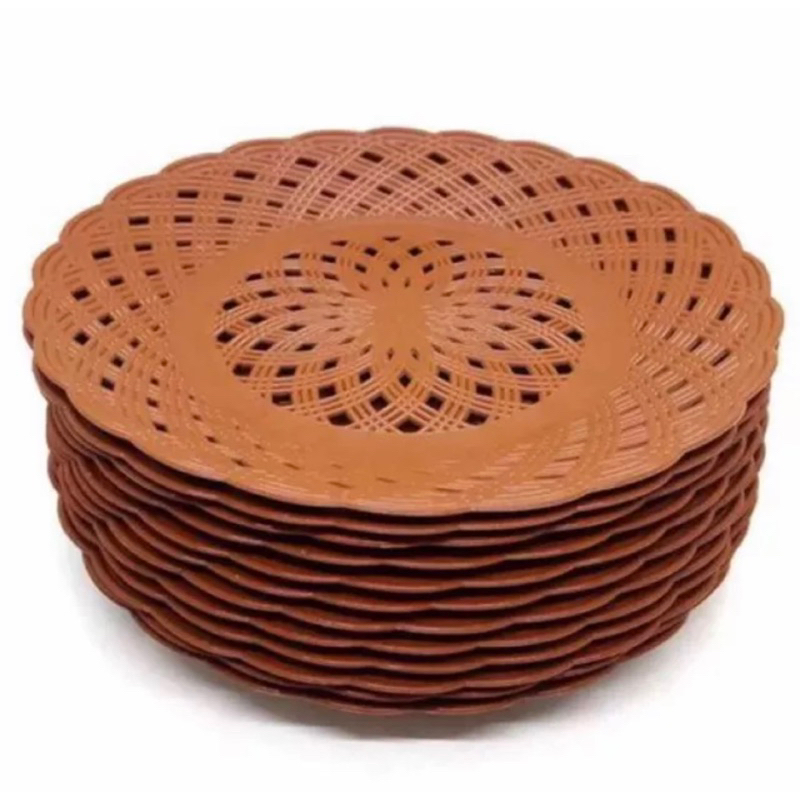 PIRING ANYAM BAHAN PLASTIK MOTIF ANYAMAN Paket isi 12 pcs Diameter: 24,5 cm Warna coklat MUDA/GELAP Mudah dicuci dan dibersihkan Dapat dipakai berkali kali Awet tidak mudah rusak Tambahkan buble wrap untuk tambahan packing biar paket anda aman. UNTUK WARNA RANDOM SESUAI STOK READY YA READY COKLAT TUA UNTUK 1LUSIN WARNA SERAGAM BERAT 1LUSIN BARANG 500GRAM Terima Kasih