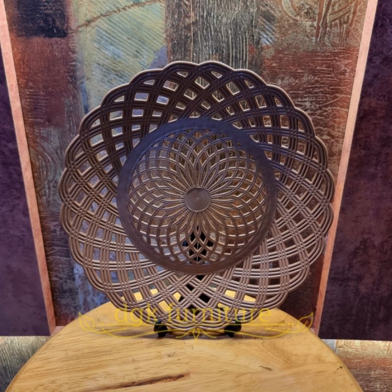 Piring Rotan Anyam Anyaman Plastik Nasi Ayam Penyet Diameter 25 cm Coklat Tua