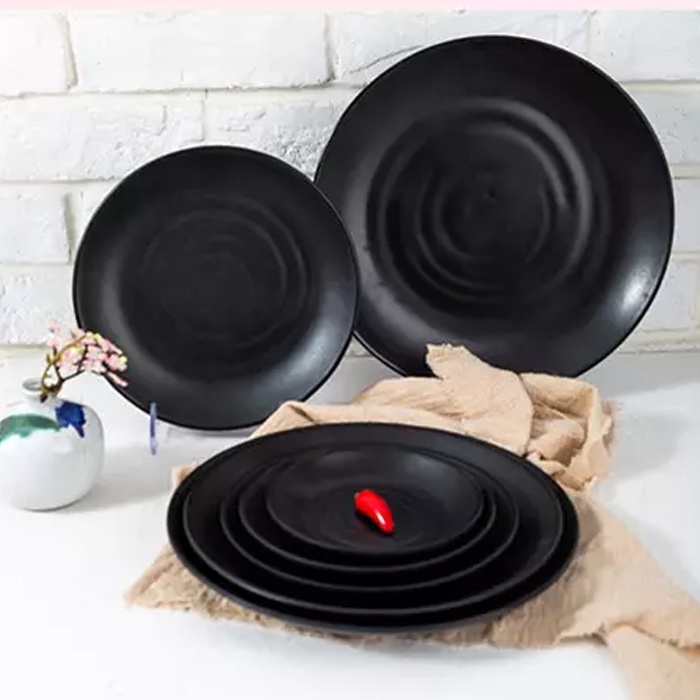 Detail Piring Saji Piring Makan Melamin Melamine Piring Ceper Hitam Korea Style