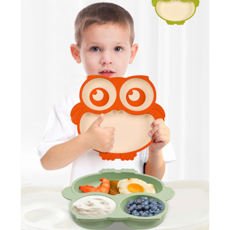 Detail Piring Silikon Sekat Anak BPA Free Model Burung Hantu Owl / Piring MPASI Anak