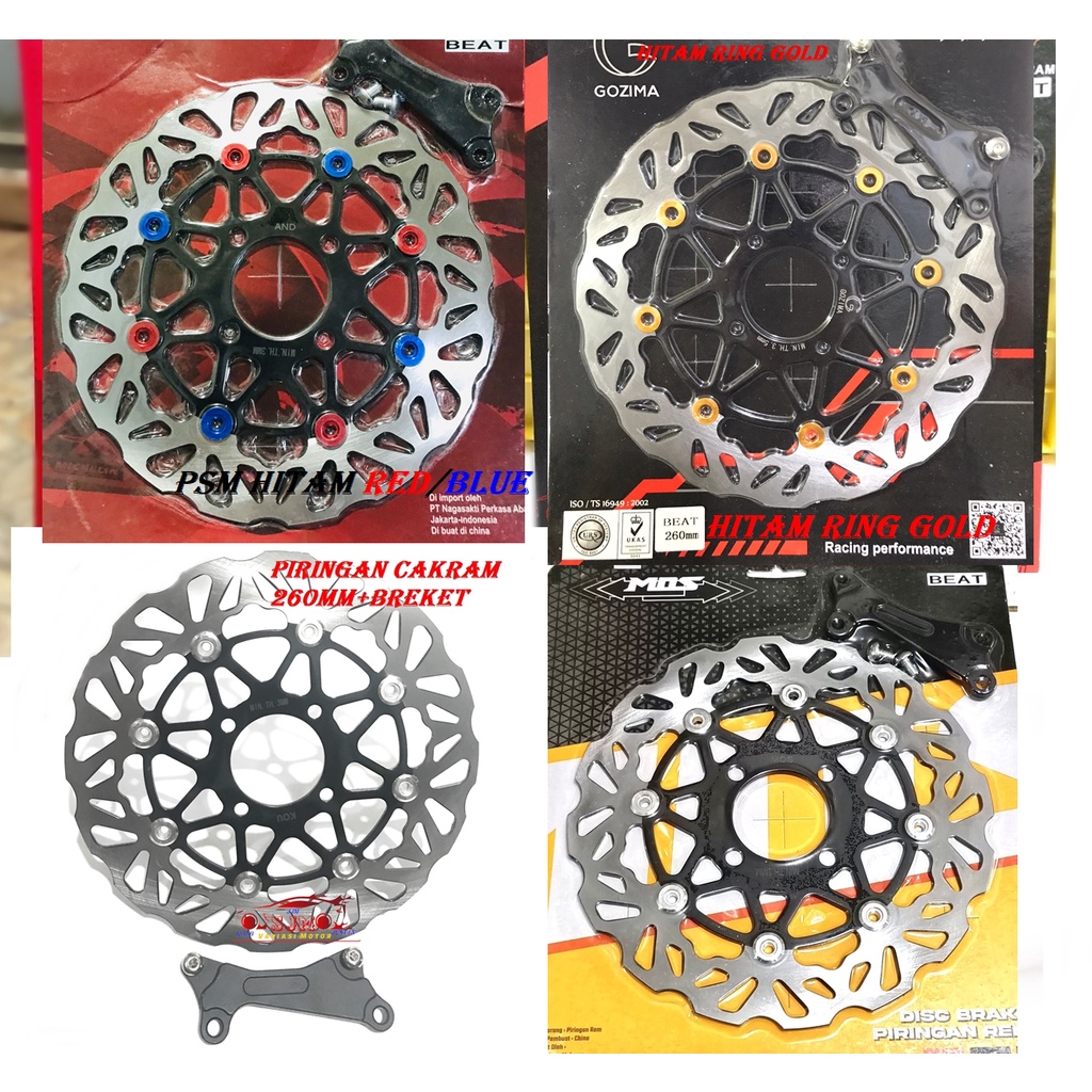 PIRINGAN BESAR 260MM PLUS BREKET . BAUT LUBANG 4 . UNTUK MOTOR MATIC HONDA : ALL BEAT F1/BEAT INJEKSI ALL SCOOPY ALL GENIO ALL VARIO 110 F1 ALL VARIO 125 F1 VARIO F1 150 ( TAHUN 2015/2016/2017)