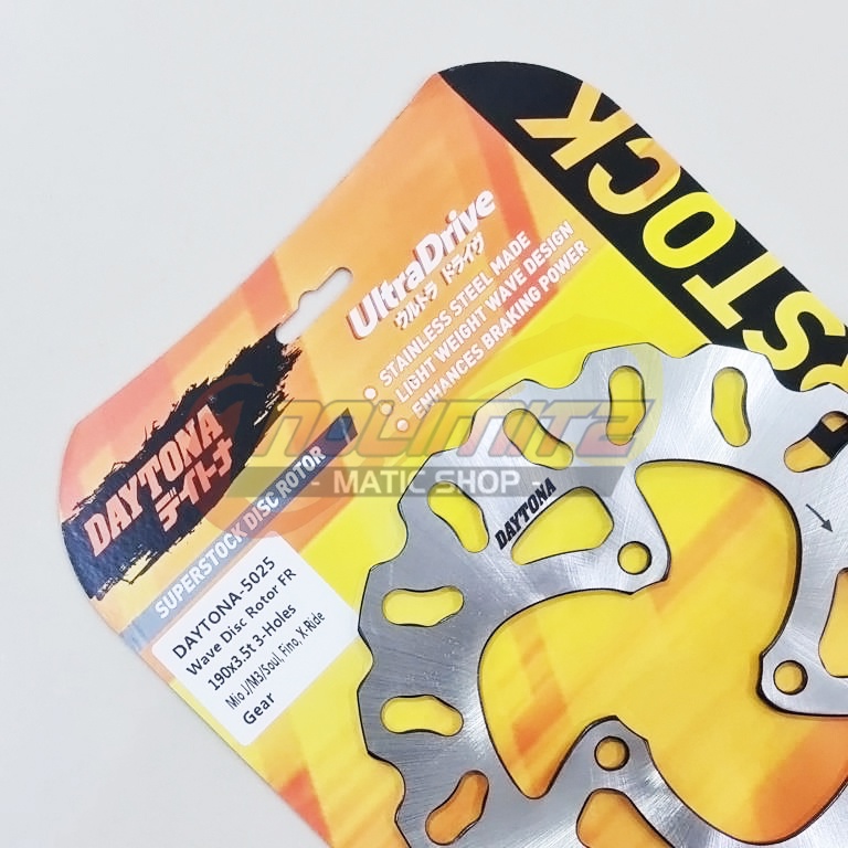 Fitur : - 100% DAYTONA Original, Kode 5025 - Stainless Steel Made - Light Weight Wave Design - Enhances Braking Power - Cutting Edge Wave Design : Maximizes braking performance while at the same time reducing the weight - SUS 410 HI-Friction Stainless Steel With Accurate and Fine Grinding Surface - Variant Holes : Enable Pad Contact Area Stable At Any Position and Releases Heat, Dusts and Water Quickly