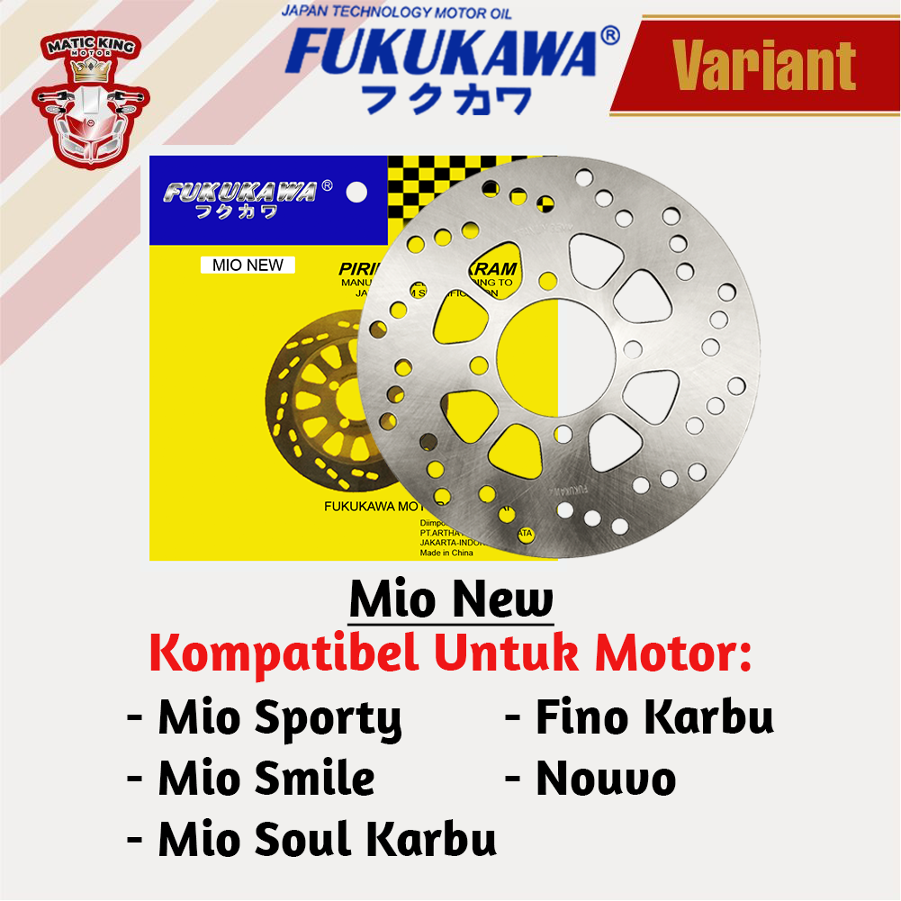 Piringan cakram disc brake Yamaha Mio J M3 S Z Soul GT Fino Freego Gear Fazzio X Ride Injeksi 115/125 Fukukawa Yo, MaticKingers! Welcome to MaticKingMotor! Biar motor awet dan nyaman, harus dirawat dengan baik dan pakai sparepart yang berkualitas, Mas Bro! Pas banget nih toko kami menyediakan macem-macem sparepart berkualitas dan original khusus untuk motor matic kamu biar makin cepat, nyaman, dan nggak gampang rusak! Selamat belanja!