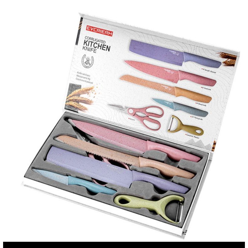 Set pisau serbaguna yang terbuat dari bahan stainless steel non stick coating Cocok untuk di gunakan di rumah tangga ataupun dijadikan hadiah untuk keluarga terdekat atau orang kesayangan anda. 1 set terdiri dari 6 pisau dengan warna kombinasi (tidak bisa pilih 1 warna karena sudah 1 set) dan 1 Serutan.