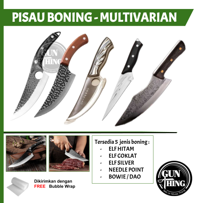 Terdapat 5 varian pisau : - ELF HITAM - ELF COKLAT (Sarung / No Sarung) - SILVER (No Sarung) - NEEDLE - BOWIE / DAO